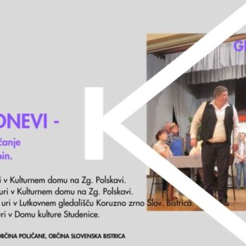 Javni sklad RS za kulturne dejavnosti, Območna izpostava Slovenska Bistrica, vabi na Gledališke dneve – območno Linhartovo srečanje odraslih gledaliških...