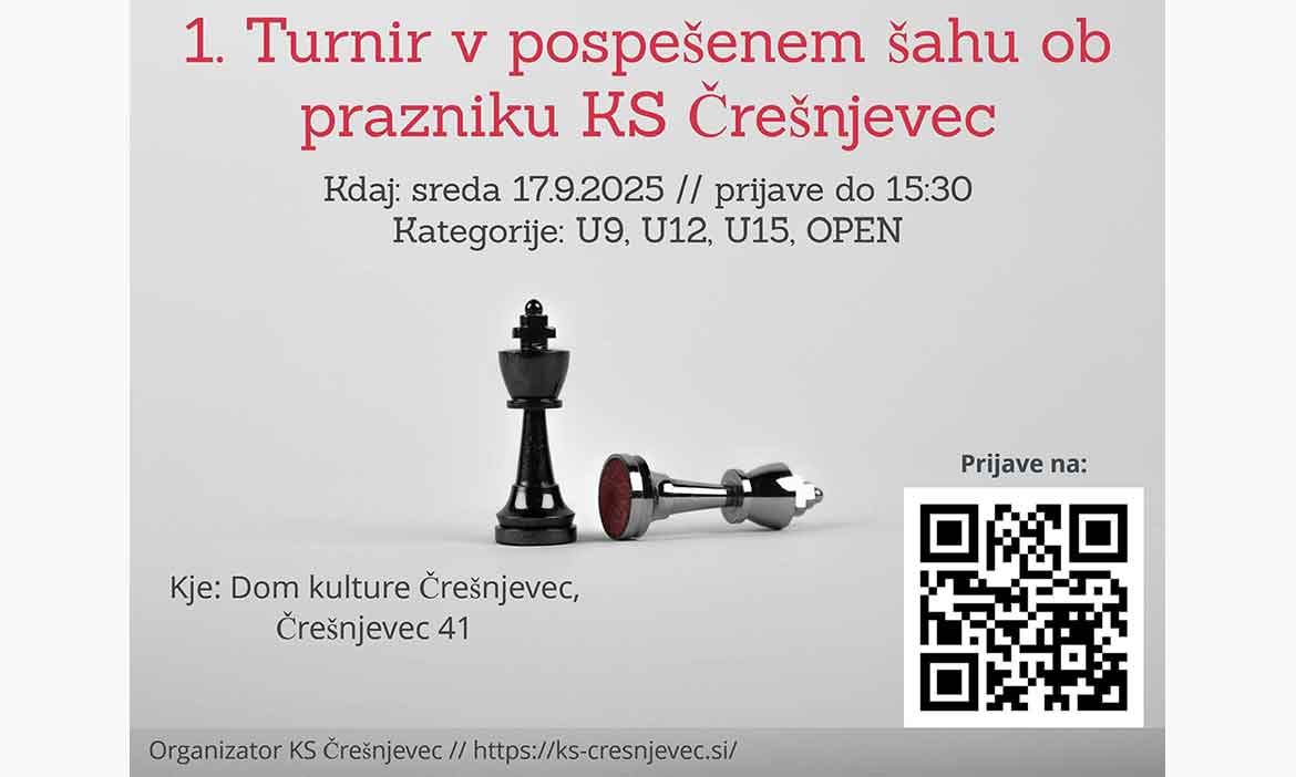 Krajevna skupnost Črešnjevec vabi vse ljubitelje šaha na turnir, ki bo potekal v okviru praznovanja krajevnega praznika.