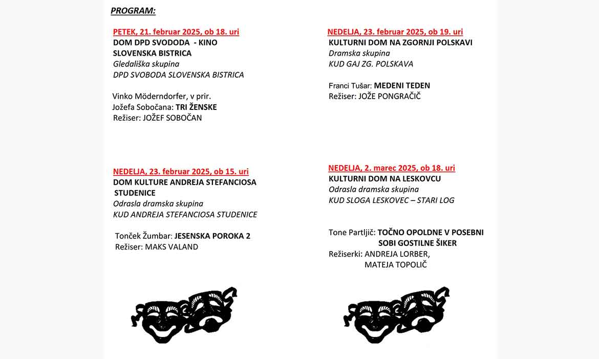 Vabljeni na prireditve, ki jih za vas organizira Javni sklad RS za kuturne dejavnosti, izpostava Slovenska Bistrica.