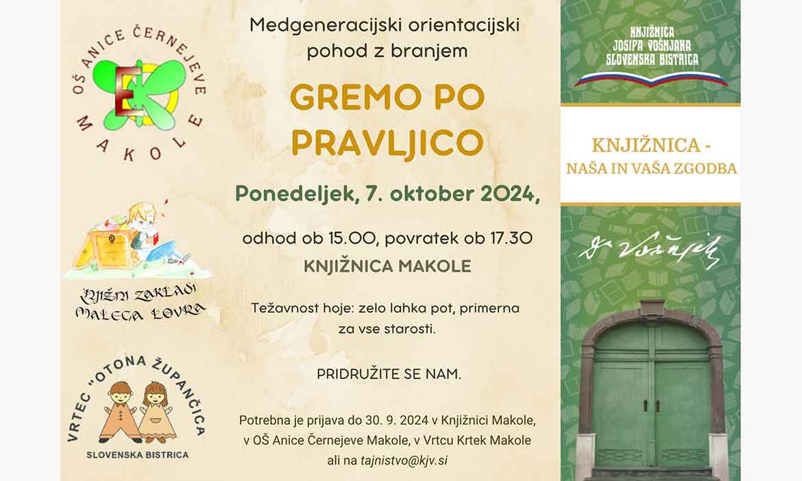 V ponedeljek 7.10.2024 ob 15:00 izpred knjižnice Makole.