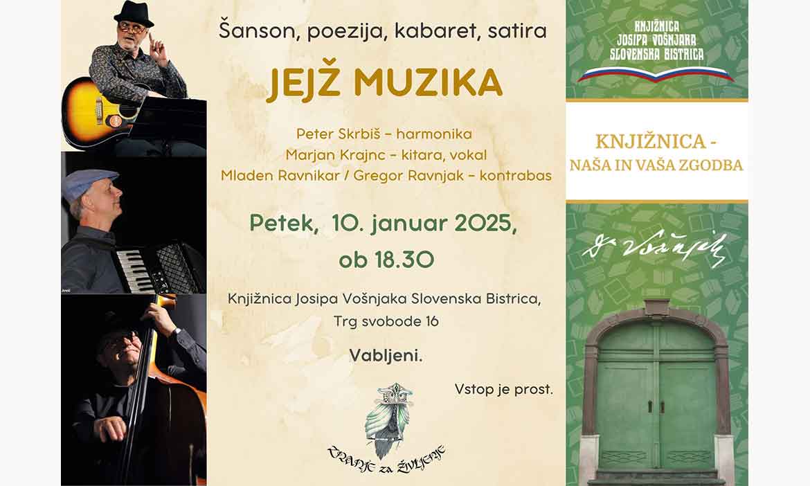 Predstava bo v petek 10. januarja 2025 ob 18:30 v prostorih knjižnice Josipa Vošnjaka, Trg svogobe 16, Slovenska Bistrica.