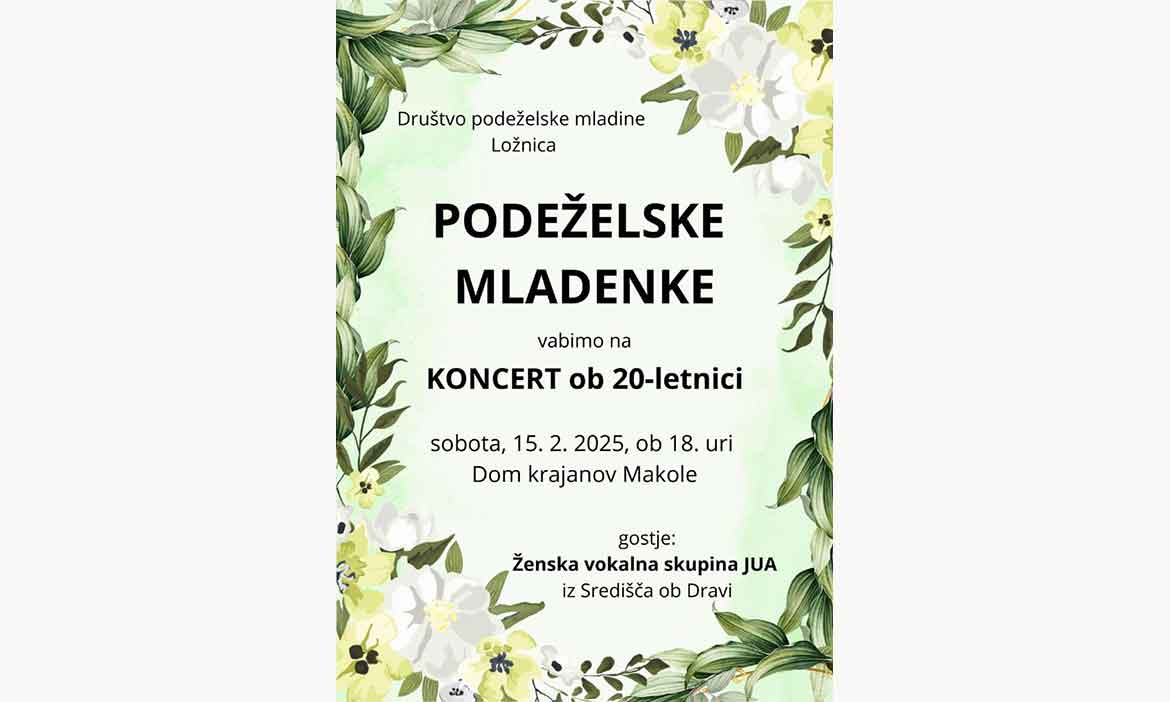 DRUŠTVO PODEŽELSKE MLADINE LOŽNICA – PODEŽELSKE MLADENKE VABIMO NA KONCERT OB 20-LETNICI