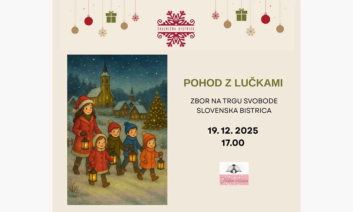 V petek 19. 12. 2025 ob 17:00 uri, zbor na Trgu svobode Slovenska Bistrica.