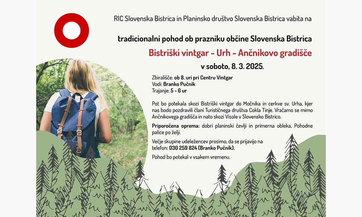 RIC Slovenska Bistrica in Planinsko društvo Slovenska Bistrica vabita na tradicionalni pohod ob prazniku občine Slovenska Bistrica.