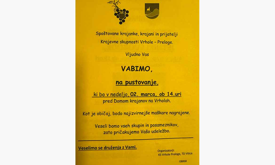 Vabilo na pustovanje KS Vrhole – Preloge