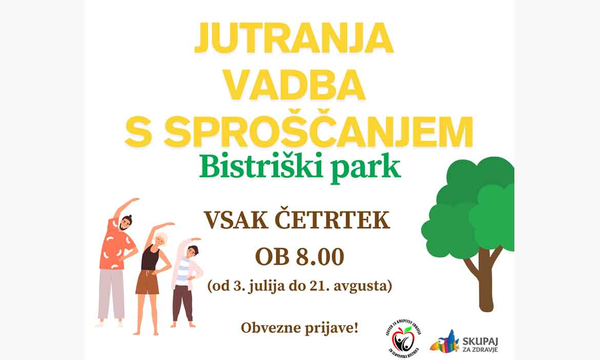 Poletje pri nas bo namenjeno gibanju. Lepo vabljeni, da se nam pridružite. OBVEZNE PRIJAVE: 041 682 288 ckz@zd-sb.si |