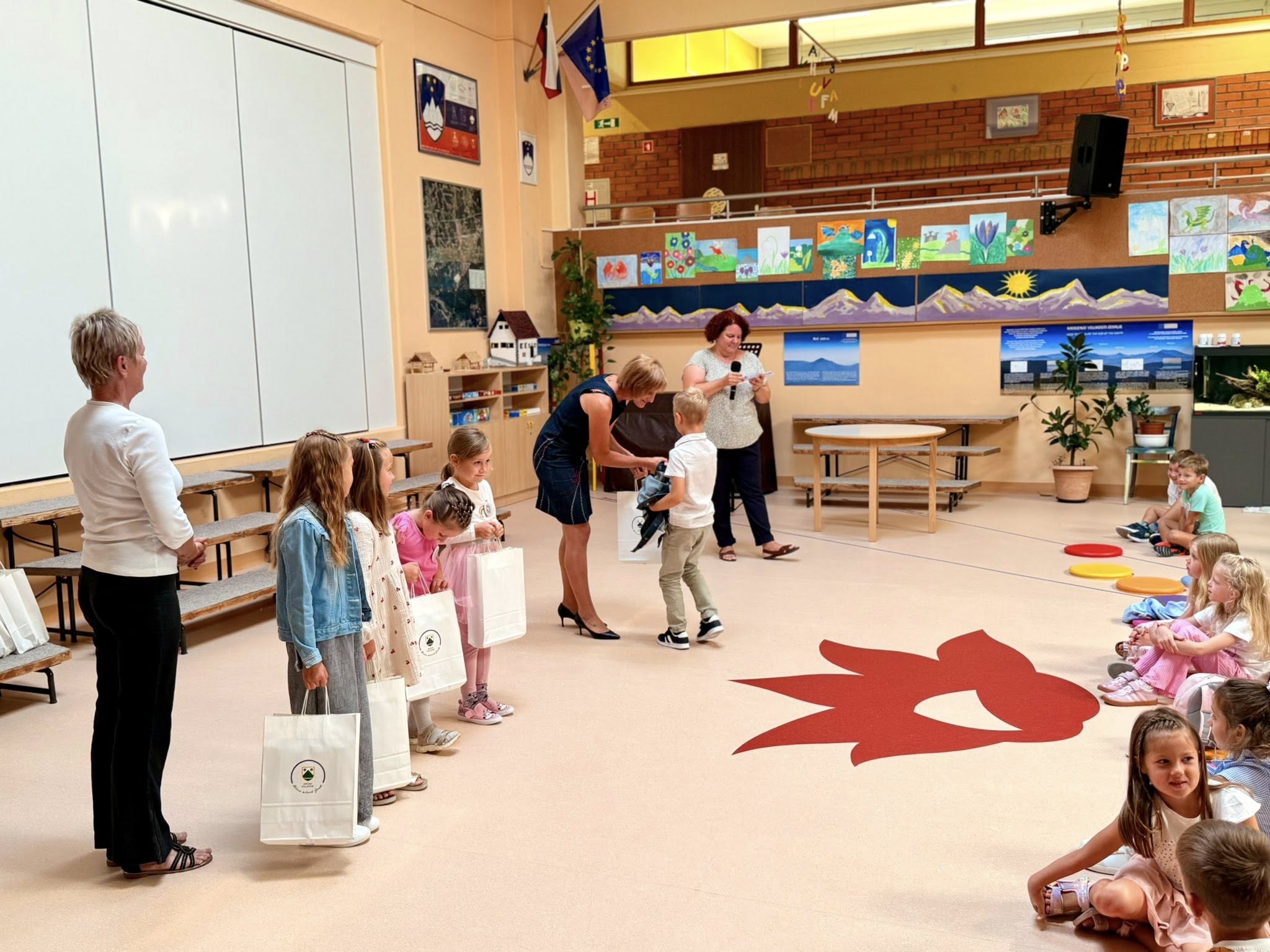 Ob tej priložnosti jih je obiskala tudi županja dr. Petra Vrhovnik. »Vsem učencem, učiteljem in staršem želimo miren in uspešen začetek šolskega leta, našim prvošolcem pa pogumne prve korake na poti znanja. Naj bo šolsko leto polno veselja, prijateljstva in novih odkritij,« jim je zaželela. Najmlajšim je ob tem posebnem dnevu razdelila paket ob začetku šolskega leta, ki vsebuje Jolly paket ustvarjalnih šolskih potrebščin ter novo knjigo Pogumna Špelka, napisano posebej za Poljčane.