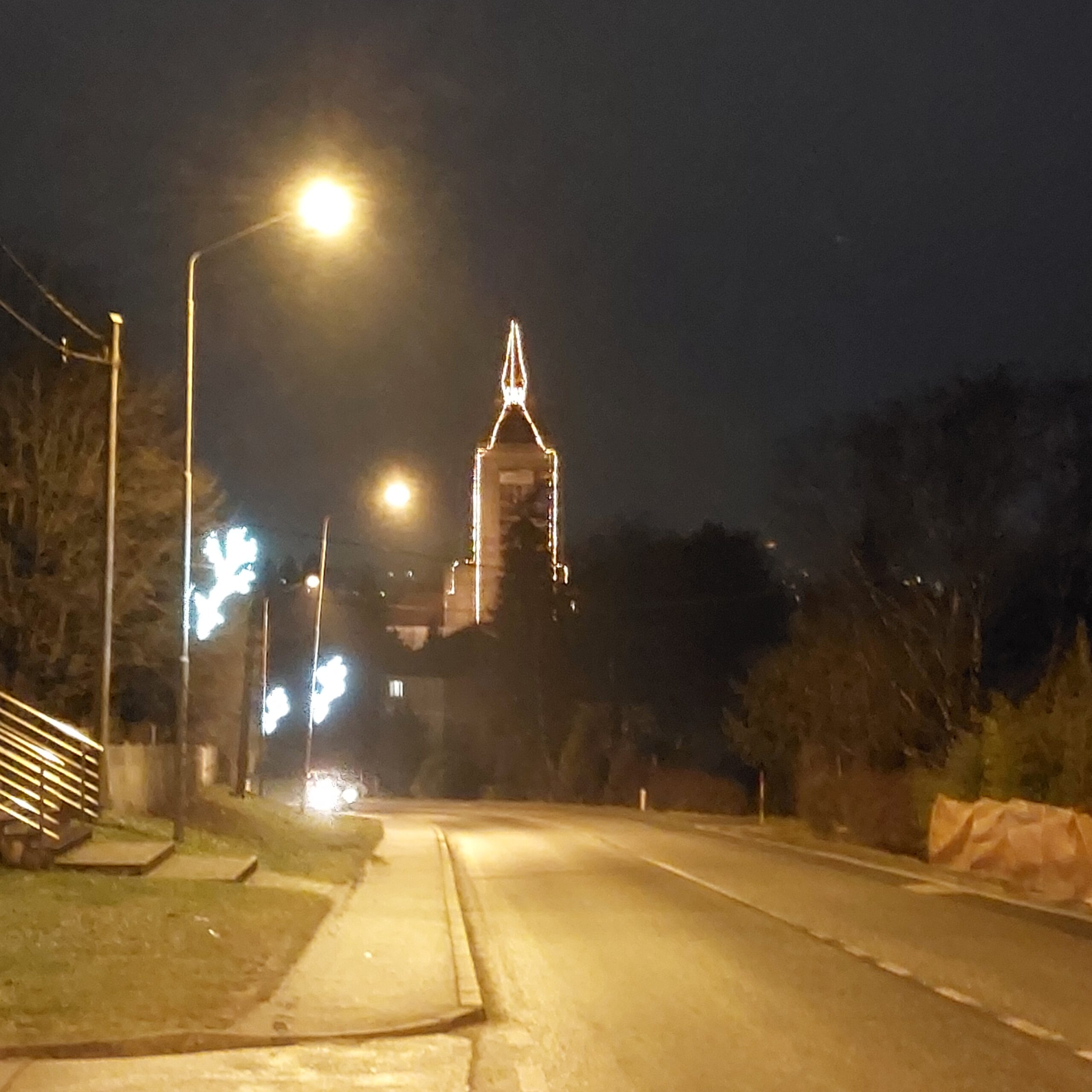 Želja je bila, da bi jih prižgali že na prvo adventno nedeljo, a se je datum prvega prižiga malce zamaknil zaradi nedokončanih faz dela na konici in strehi. Je pa bilo veselje toliko večje, ko je skoraj 300 metrov lučk le zažarelo tik pred četrto adventno nedeljo. Njihov obris prikazuje veličastno podobo mogočnega zvonika, ki je zdaj res dobro viden tudi v nočnem času in ga lahko ljudje opazijo že na daleč. »Res sem vesel številnih pozitivnih odzivov in lepih presenečenj, ki jih je ta osvetlitev zvonika sprožila,« pravi župnik Jani Družovec. »Lučke bodo lepoto in veličino našega zvonika poudarjale v letošnjem božičnem času, morda pa tudi po končani obnovi,« je še skrivnostno dodal.