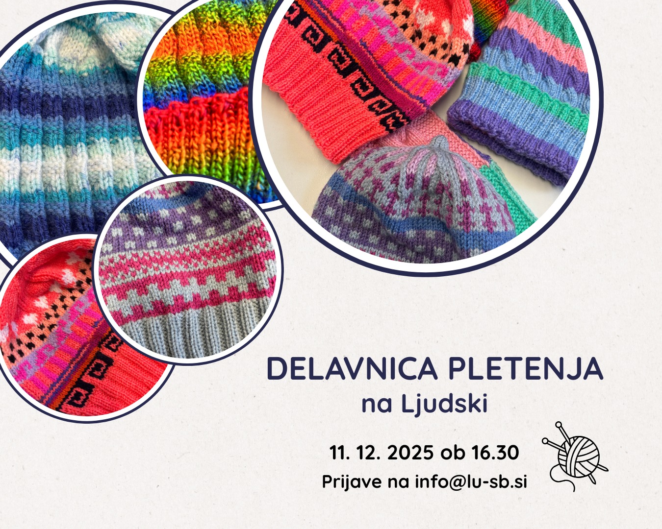 Vabljeni na dveurno delavnico najbolj klasične zimske veščine naših babic – pletenja.Volno in pletilke potrebujete svoje, znanje & izkušnje prostovoljke Ivane pa dobite pri nas. |