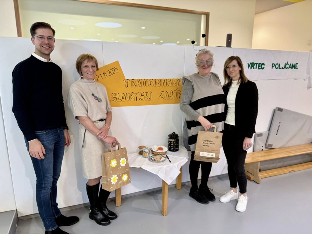 V petek, 21. novembra 2025, so v vrtcu Poljčane in vrtcu Studenice obeležili Tradicionalni slovenski zajtrk, vseslovenski projekt, ki poudarja pomen lokalno pridelane hrane, zdrave prehrane ter vloge kmetijstva in čebelarstva v našem okolju. Letos je potekal pod sloganom »Moja izbira je slovenska hrana«.