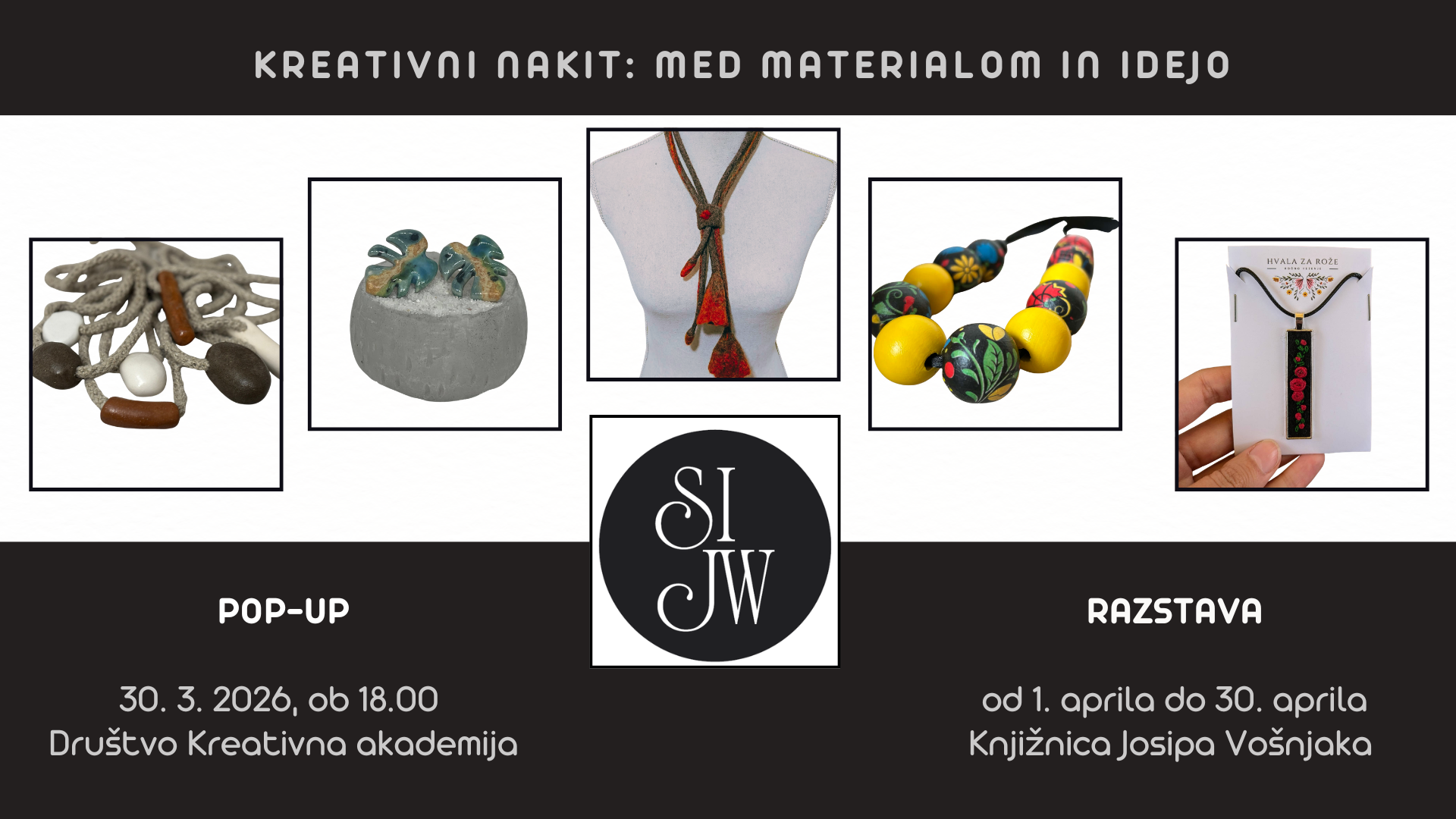 V okviru Slovenskega tedna nakita (SIJW) 2026 bo v Slovenski Bistrici potekal poseben dogodek, na katerem se bo predstavilo Društvo Kreativna akademija s skupinskim projektom sodobnega rokodelskega oblikovanja nakita. Projekt združuje raznolike ustvarjalne pristope in poudarja materialno raznolikost, pri čemer ročno delo in osebni izraz presegata zgolj dekorativno vrednost ter postajata nosilca zgodb, identitete in umetniškega raziskovanja.
